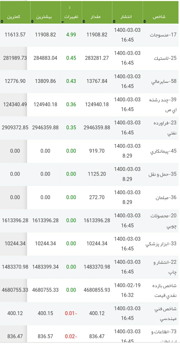 شاخص ۱۴۰۰/۰۳/۰۳